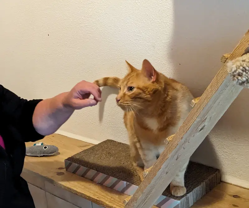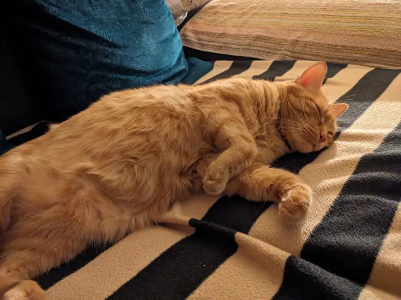 Anfangs hatten wir ein paar Sorgen mit ihm und eine Tierklinikrechnung von bald 3000 Euro. Inzwischen hat sich alles eingespielt. Draußen ist er eher vorsichtig und draußen ist auch nur bei schönem Wetter interessant. Drinnen schläft er viel, fordert Leckerli ein, spielt und genießt sein Katzenleben.