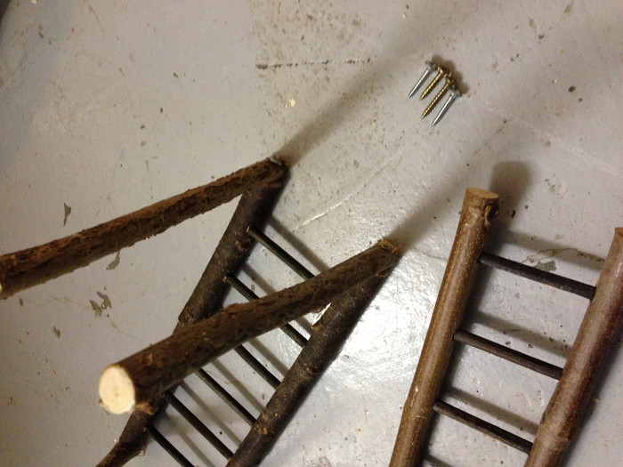 Die Pfosten werden nun mit den Leitern verschraubt. Ich habe hier einfach Holzschrauben verwendet: