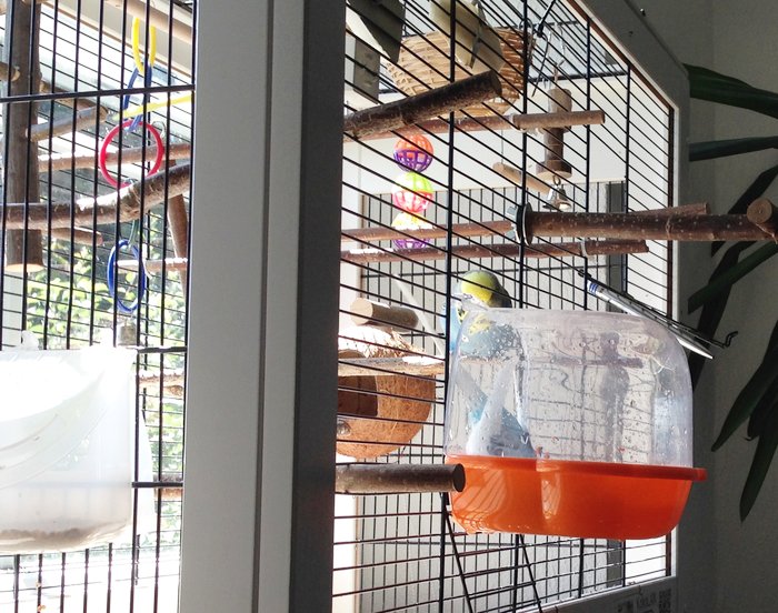 Wasserscheu sind Wellensittiche nicht. Das beweist zumindest die Vogeldusche. Nun will nicht jeder gleich die großen Geschütze auffahren und so etwas bauen oder kaufen. Die günstige Alternative ist das Vogelbad, welches für wenige Euro an die Käfigtür gehängt werden kann. Wie bei jedem Zubehör stellt sich auch hier die Frage, ob die Schneusis überhaupt blicken was das ist und wofür man das nutzen kann. 🙂