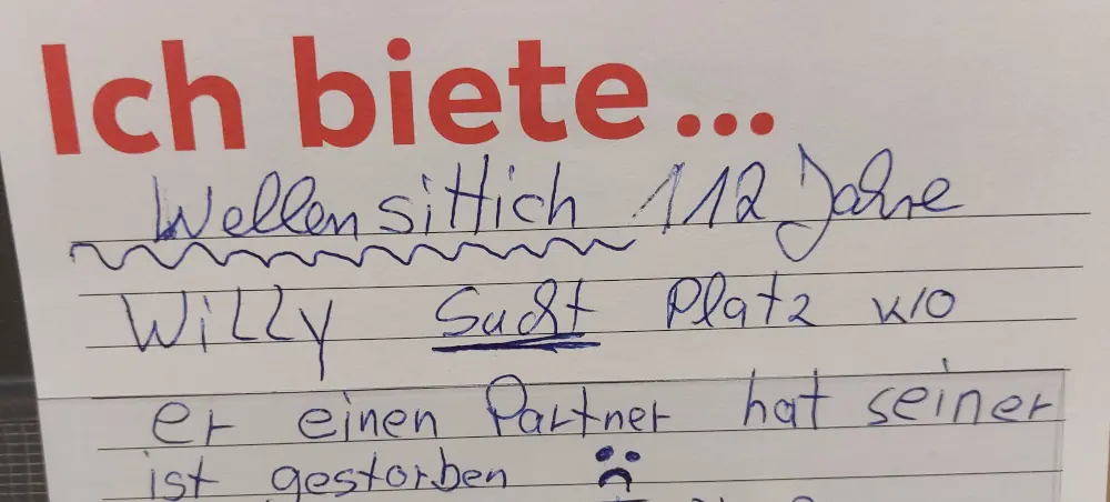 Eigentlich schaue ich nie auf die Kleinanzeigen im Kaufland. Beim Entsorgen der Angebotspizzaschachteln, schaute ich dennoch mal kurz hoch, da stand die Anzeige:
