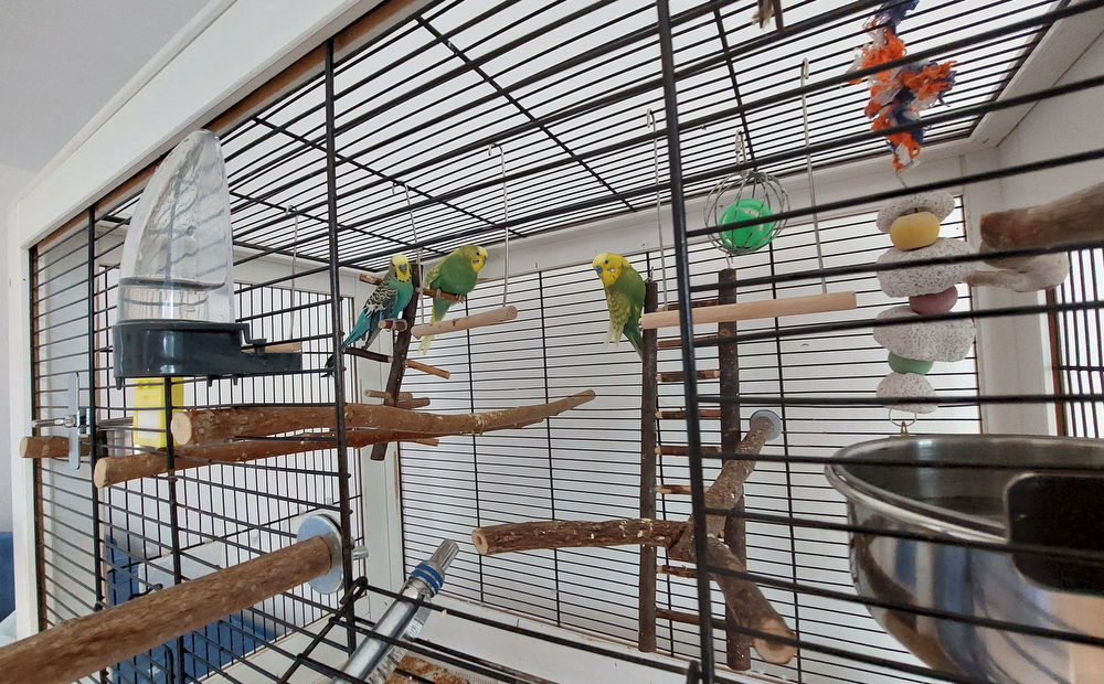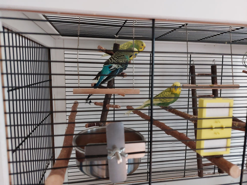 Das neue Hobby der Wellis, herunterreißen der Futternäpfe, daher jetzt schwereres Modell im Einsatz.