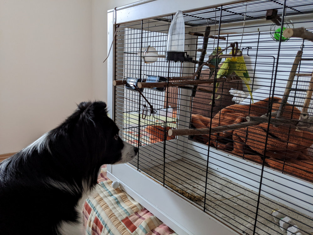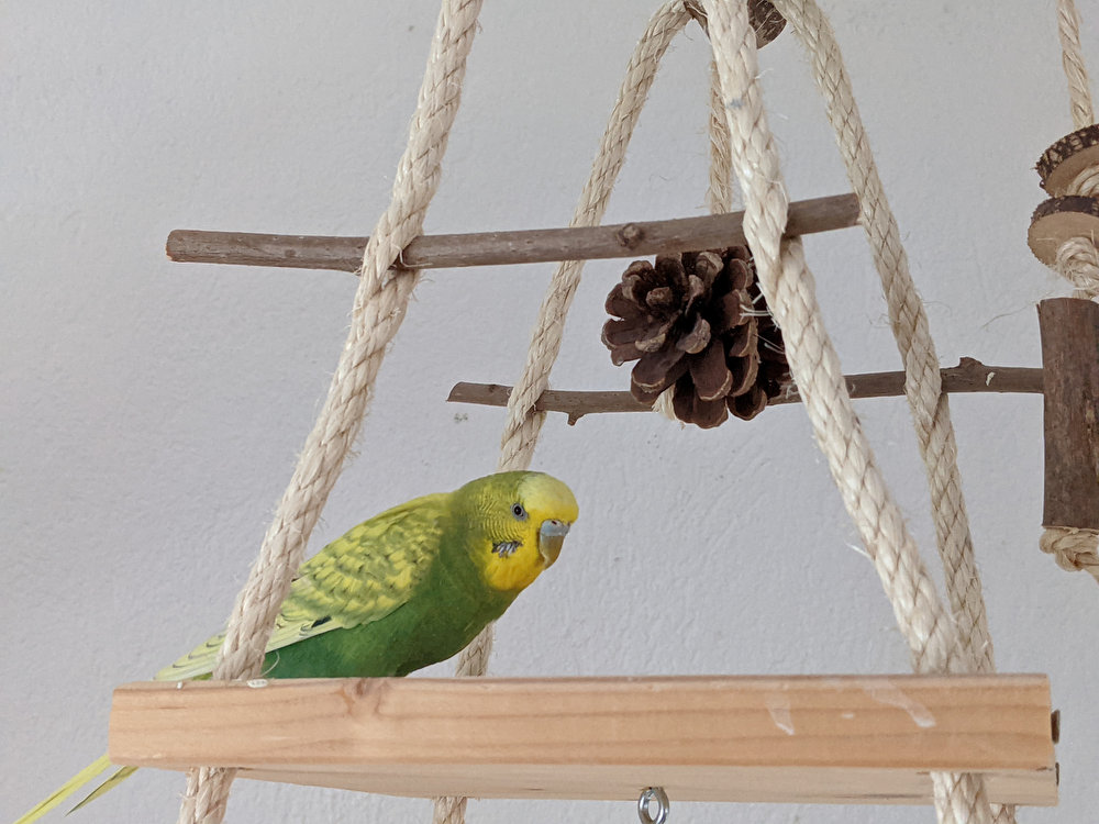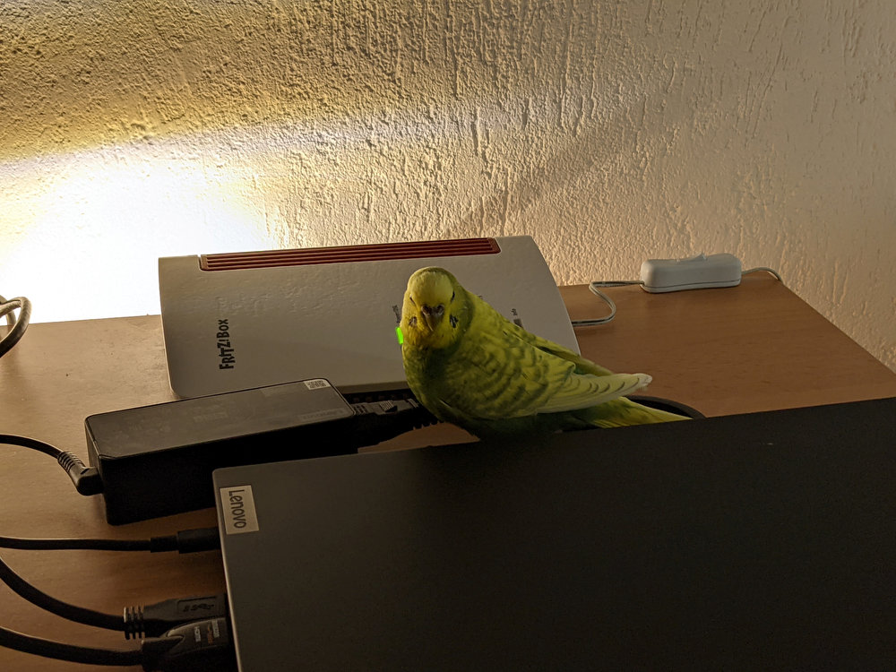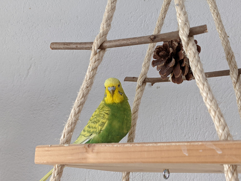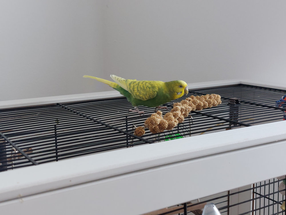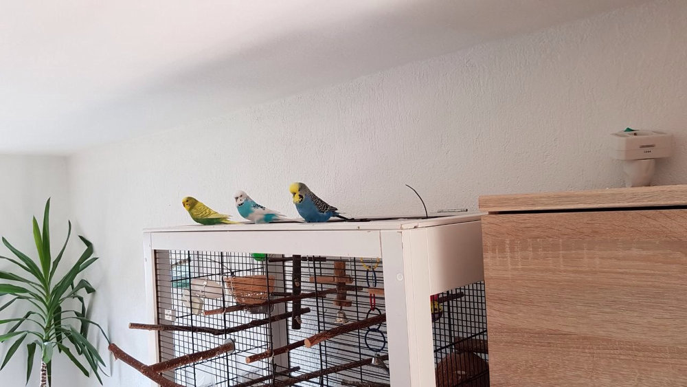 Zwischendrin war sie immer wieder aktiv, kletterte am Käfig herum. Sogar ein Zwitschern kam immer mal wieder raus. Flog sie dabei auf den Boden, musste ich den Käfig auf den Boden stellen, da sie von alleine nicht mehr hochkam.