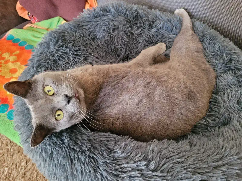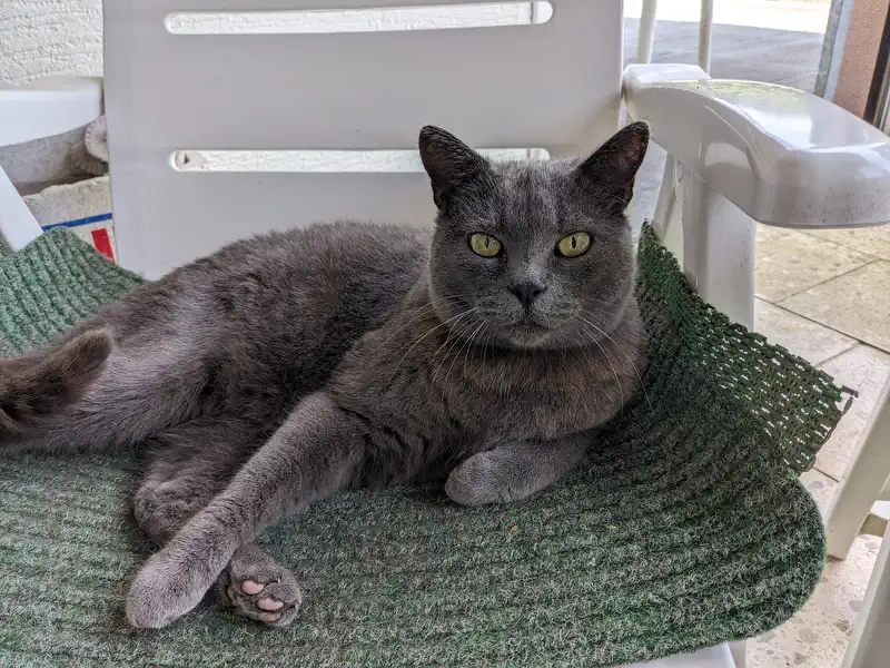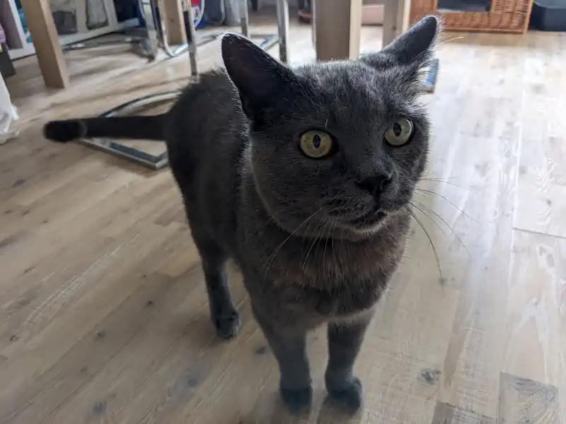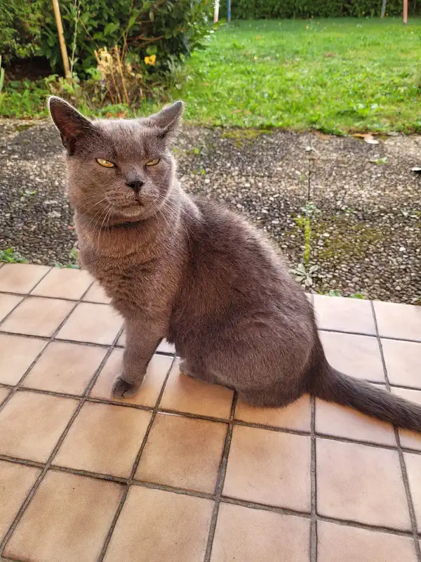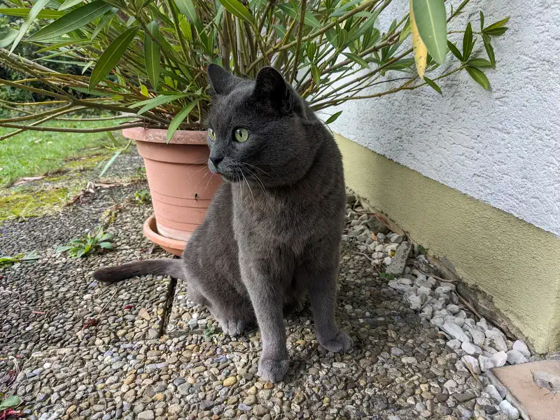 Milo kam Mitte des letzten Jahres zu uns. Er war 10 Jahre alt. Er ist einmal freiwillig oder unfreillig umgezogen, weil bei seinem Zuhause ein Hund eingezogen ist. Hat ihm nicht gefallen. Er ist pragmatisch und zog um, zu Britta.